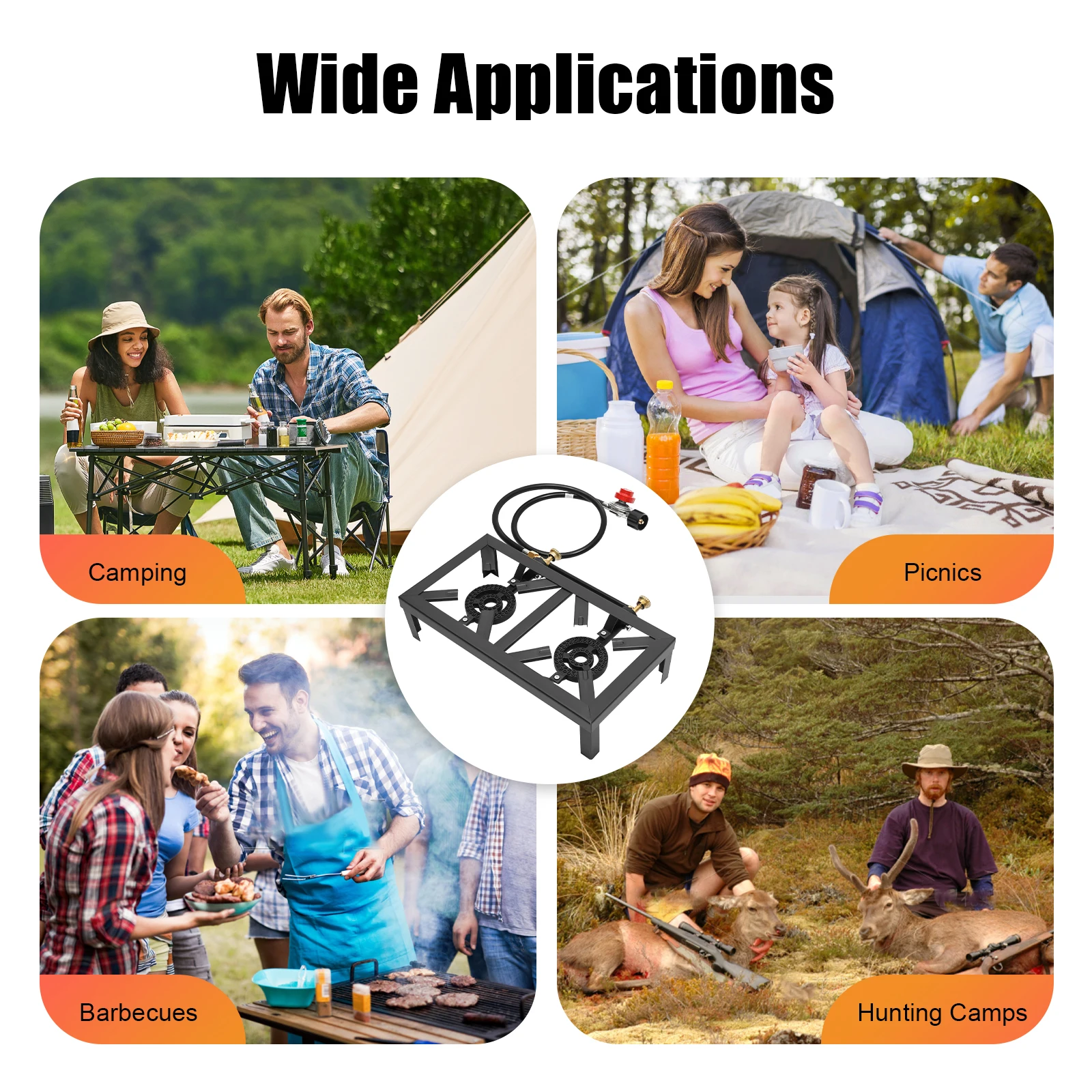 It is suitable for outdoor camping, picnics, hiking, barbecues, emergency preparedness, RVs, hunting camps, decks, beaches, fishing, outdoor cooking, gardens, terraces, home brewing, Turkey frying, maple syrup preparation, Cajun cooking, travel, courtyard. It is ideal for family dining, such as fried fish/chicken, steamed crabs, woks, clam baking, and boiling.