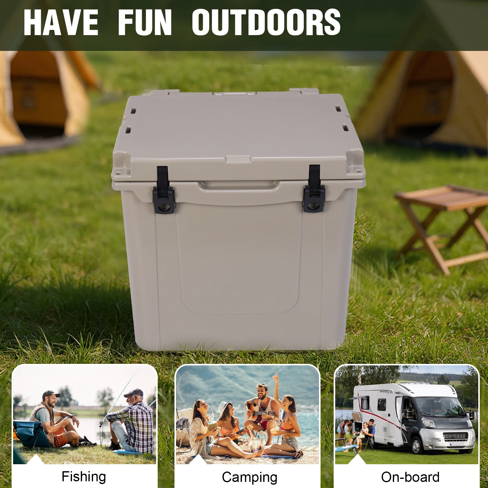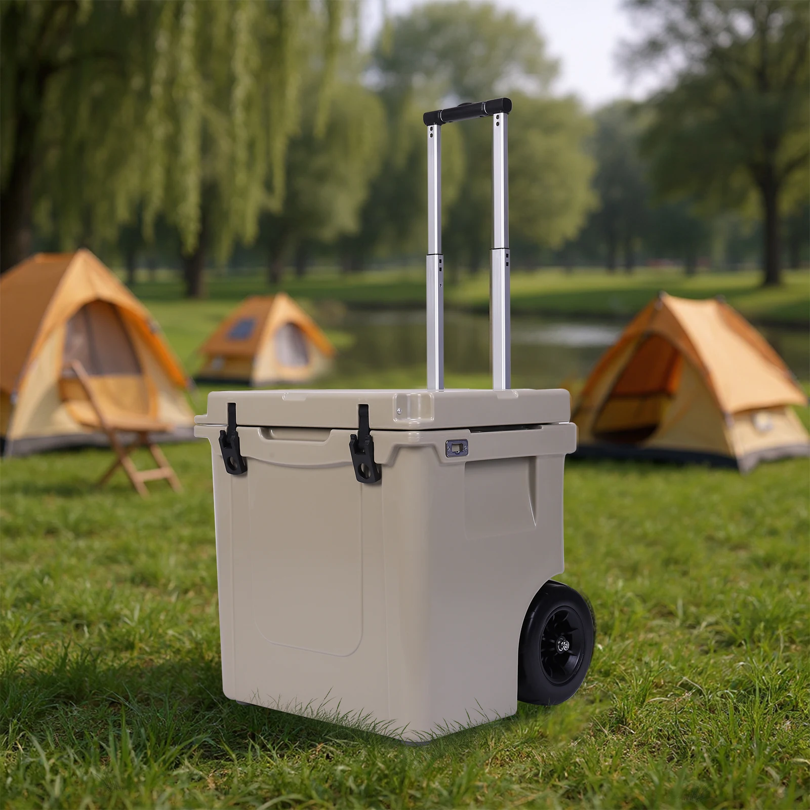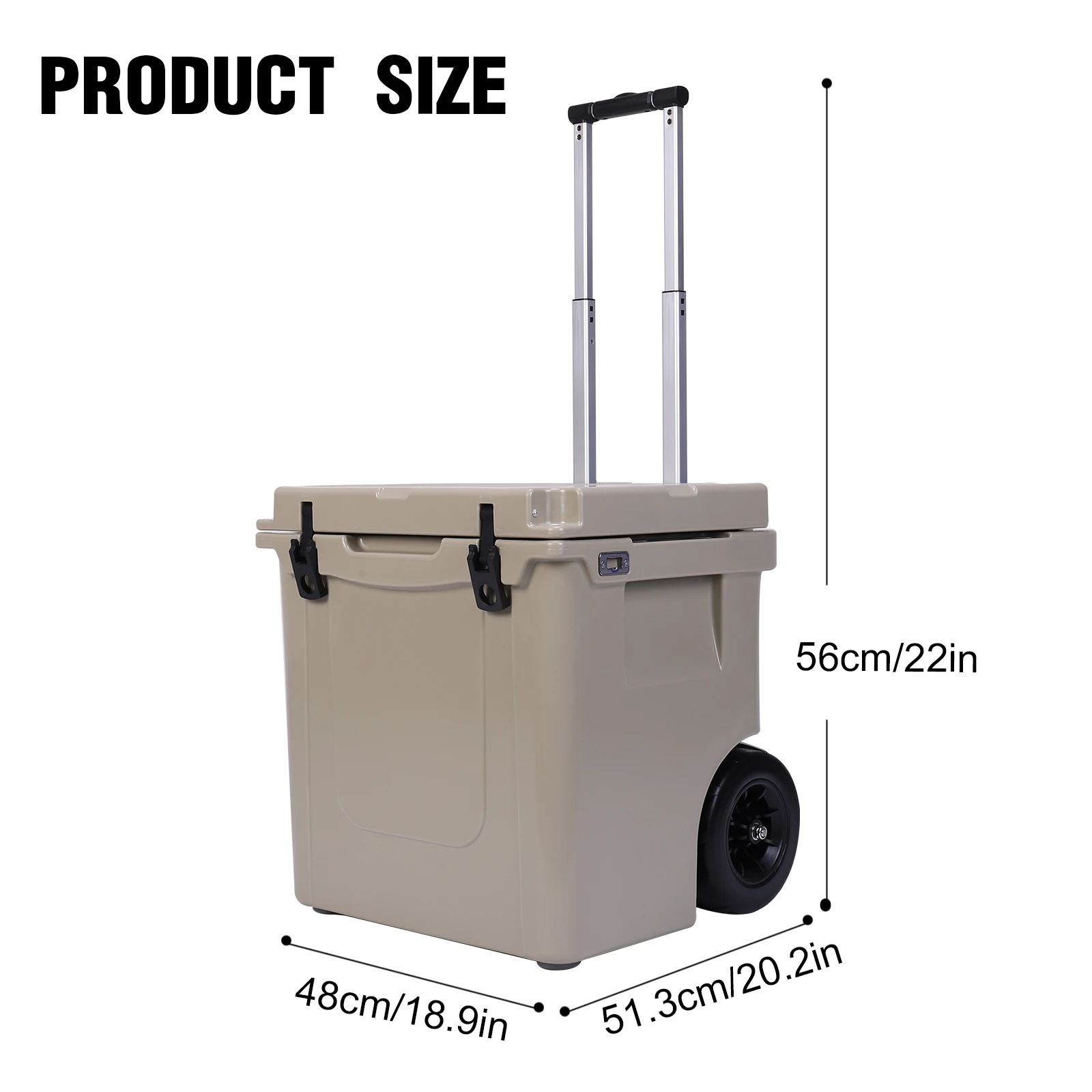 Features: 1.Spacious & Versatile Design: Our wheeled cooler offers ample space so you can stay refreshed on long road trips, tall enough for chilling wine bottles, and large enough to keep your tailgating party going all day. 2.Convenient Expandability: This ice chest features a retractable structure, making it easy and practical to use, and is built tough to handle heavy foods or supplies for any outdoor adventure. 3.Long-Lasting One-Piece Wheels: Engineered with a solid, one-piece wheel design, this hard cooler resists impacts and punctures, ensuring reliability wherever your travels. 4.Easy to Carry & Maneuver: The outdoor portable cooler box keeps your path clear, making it effortless to transport your catch or gear without hassle. 5.No Slip, No Slide: Designed for stability, the rolling cooler prevents sliding around boat decks or backseats, keeping everything secure during your travel. Specification: Product size: 513.00x480.00x560.00mm Product size: 20.2x18.9x22.05inch Origin (country or region): Mainland China (Origin) Main material: polyurethane Note: Due to different monitor settings and lighting conditions, the actual color of the item may vary slightly from the pictures. Thanks for your understanding! Please allow a 1-2 cm difference in measurements due to manual measuring.