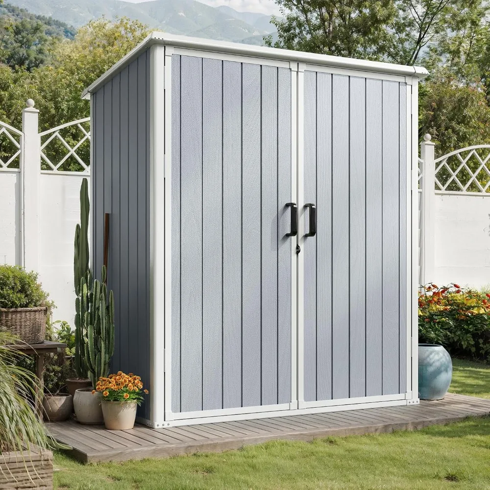 5x3 Ft Plastic Outdoor Storage Shed, Waterproof Container-style Storage House with Floor and Lockable Door