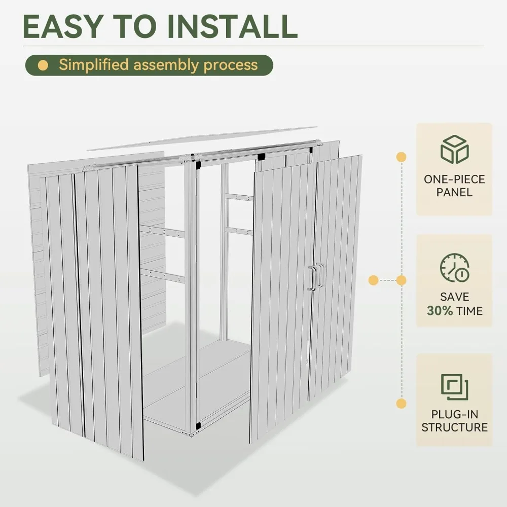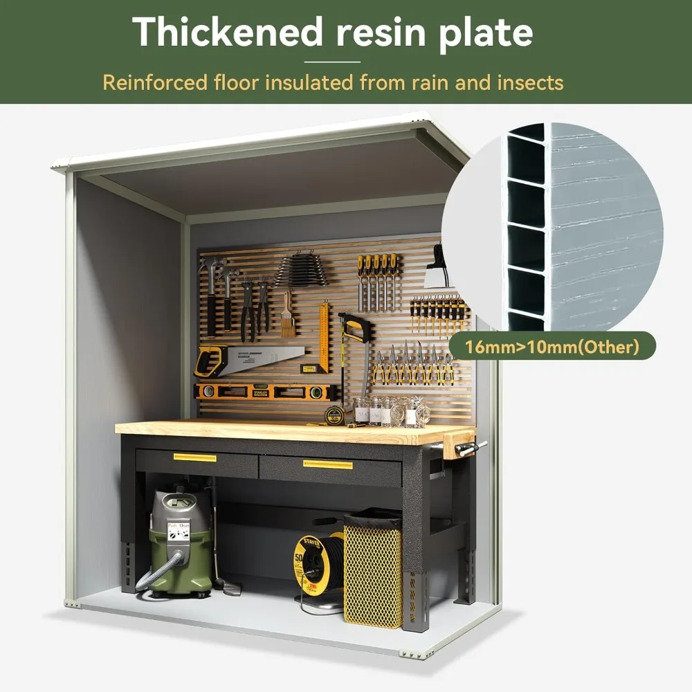 - All-weather Use: Made from premium UV-protected resin, this storage shed is built to withstand extreme weather conditions all year round—no fading, cracking, or warping over time