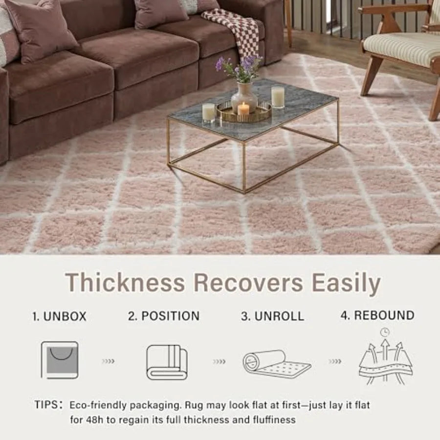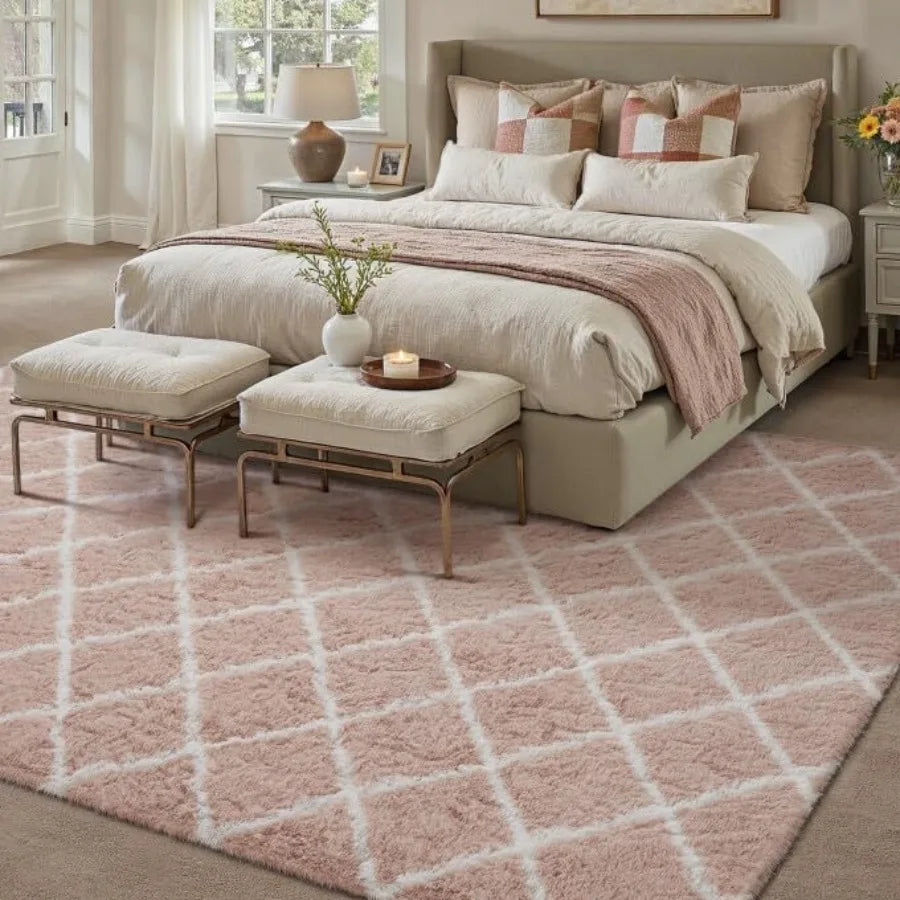 8x10 Checkered Rug for Living Room Pink and White Modern Soft Area Rug Fluffy Non-Slip Carpet for Bedroom Playroom Home Aesthet