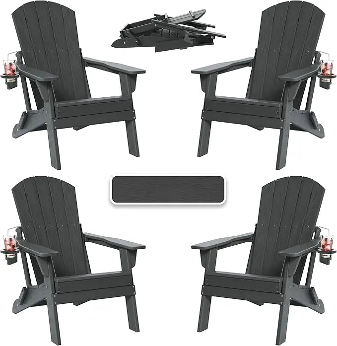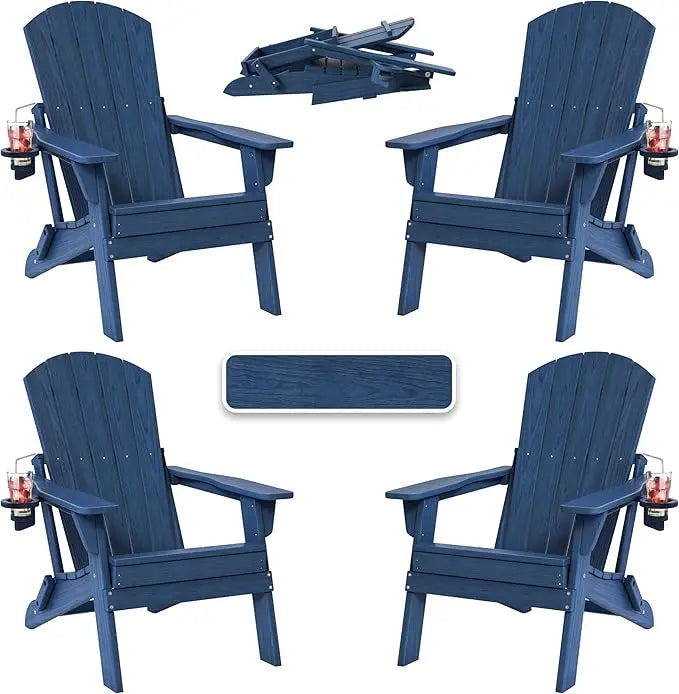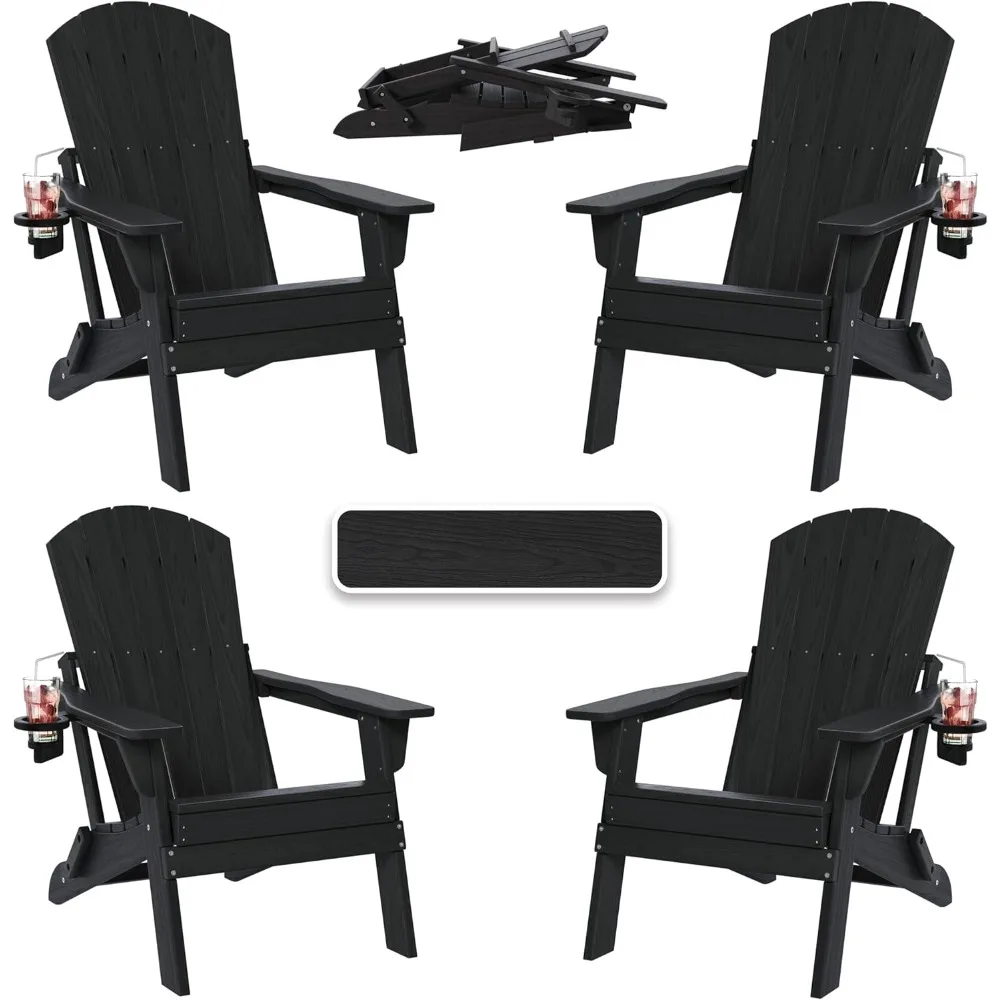 Folding Adirondack Chair with Cup Holder, HDPE All Weather Resistant Plastic Outdoor Patio Chairs, Heavy Duty Fire Pit Seating
