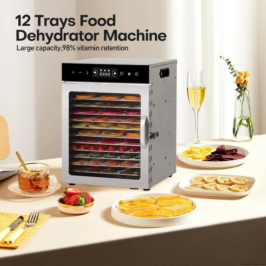 Food Dehydrator Machine with 12 Trays for Making Jerky Drying Fruits Vegetables Herbs Mushrooms and Dog Treats Ideal Kitchen Ap