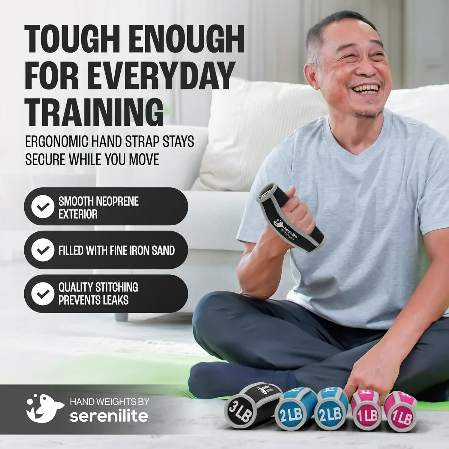 WEIGHT OPTIONS: Set includes three pairs of durable hand weights in 1lb, 2lb, and 3lb increments, providing progressive resistance training options