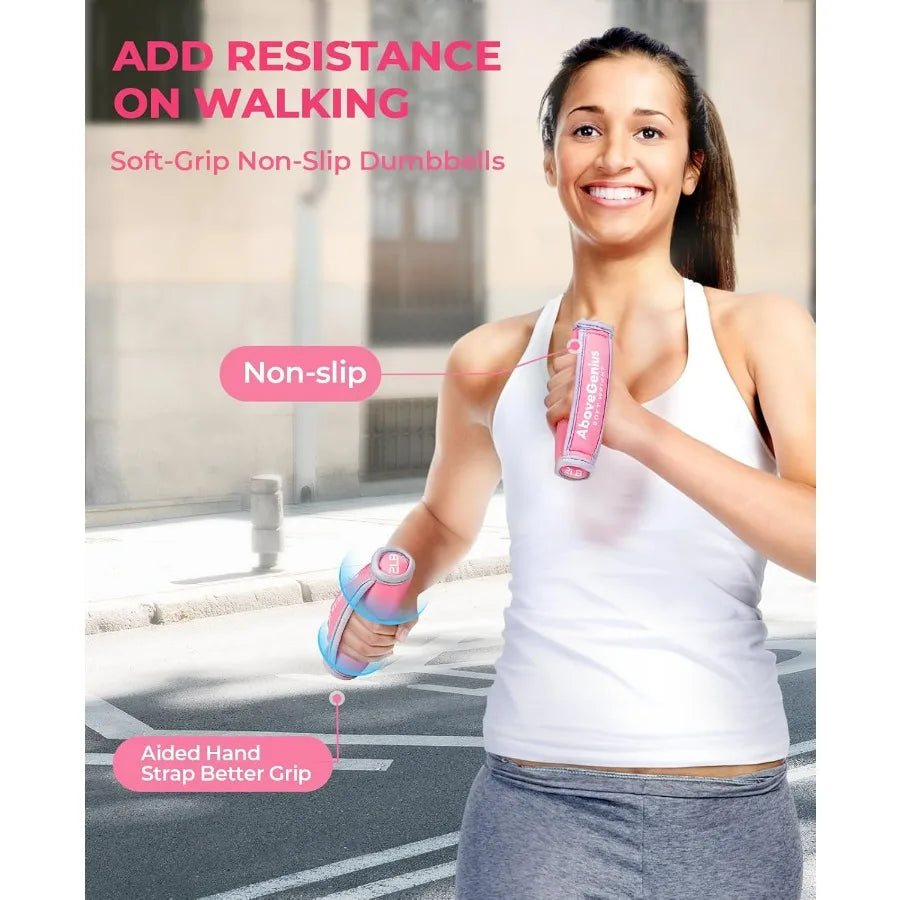 Hand Weights for Women Men, Soft Dumbbells Set of 6(1lb 2lb 3lb Each Pack) for Dumbbell Walking Weight Sets with Hand Strap, Pink Weights for Workout Running, Pilates, Yoga, Jogging and Physical Therapy, Gifts for Women