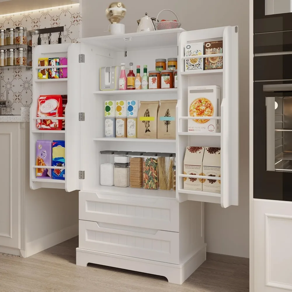 - Spacious Storage Capacity: This generously sized pantry cabinet is designed to cater to your storage needs. With two side door shelves and two drawers, there’s plenty of room for organizing spices, canned goods, and dinnerware. Plus, the top surface can be used to display a plant or store cookbooks, helping to keep your countertops clutter-free
