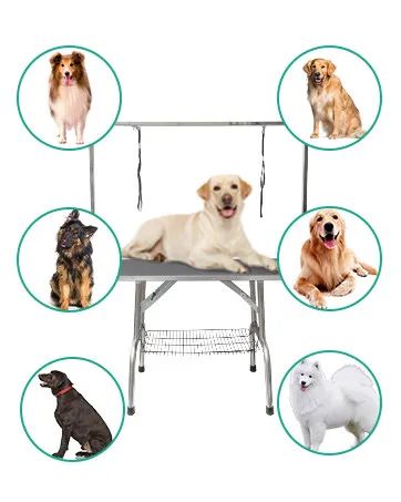 ROOMTEC pet grooming table is thoughtfully designed because we may have many breeds of dogs at home and they are all different in size. So the adjustable arms can easily adjust the right height according to their size, which means you can work with ease. The armrest fixing clip on the table top can be quickly removed and then fixed in the position you want. All in all, our table is designed to provide easier and more convenient features for pet grooming, so that pet lovers can enjoy it!