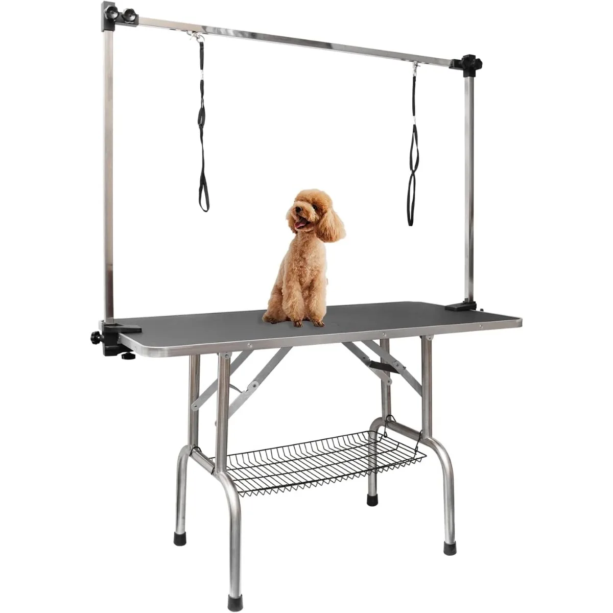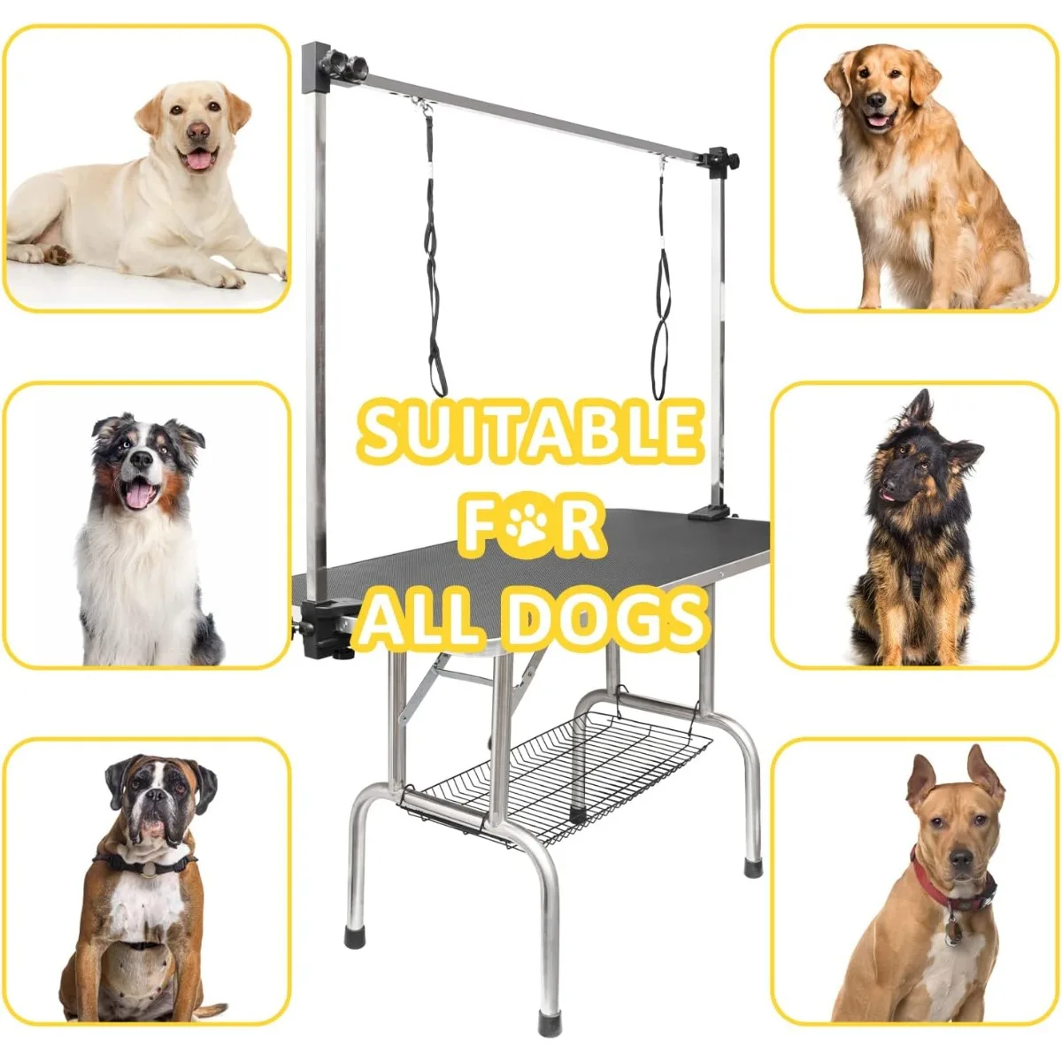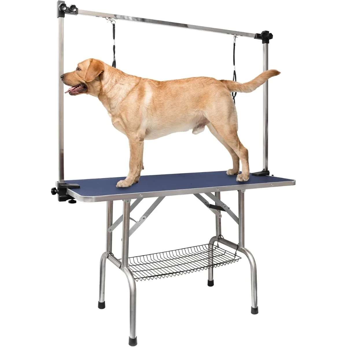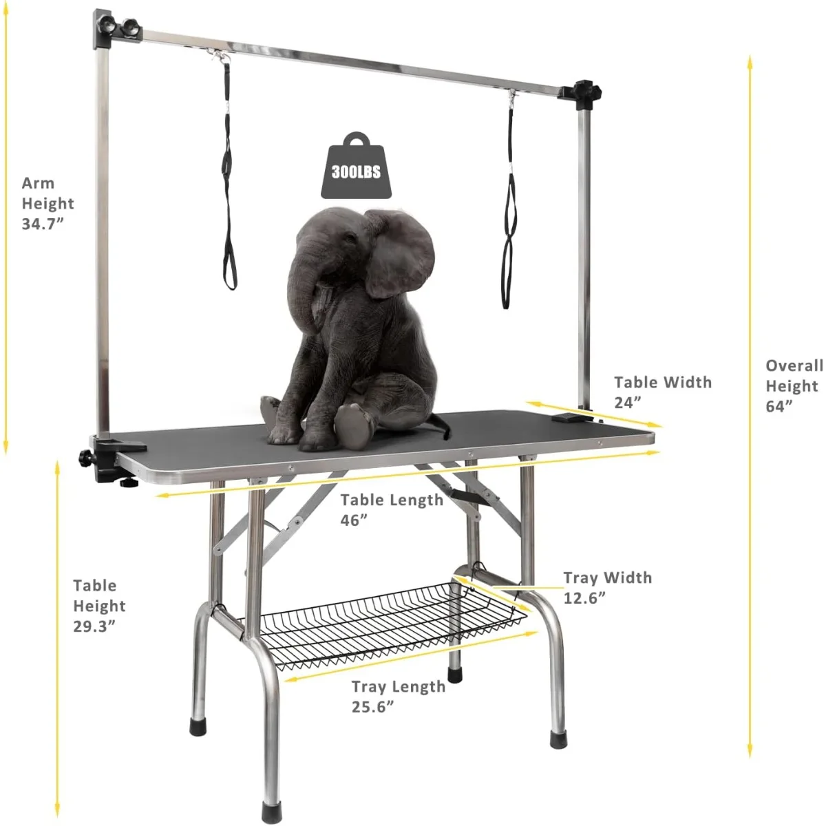 ROOMTEC 46" Dog Grooming Table,Foldable Home Pet Bathing Station with Adjustable Height Arm/Noose/Mesh Tray