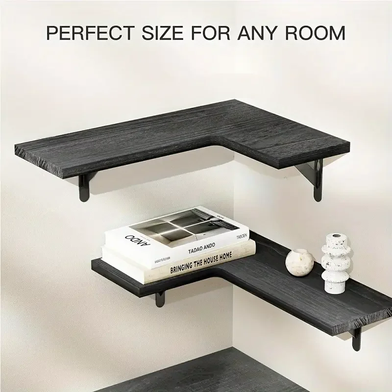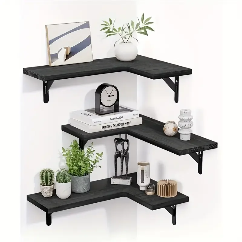 Maximize your living space with these sleek corner wall shelves, perfect for small apartments or cozy living rooms.