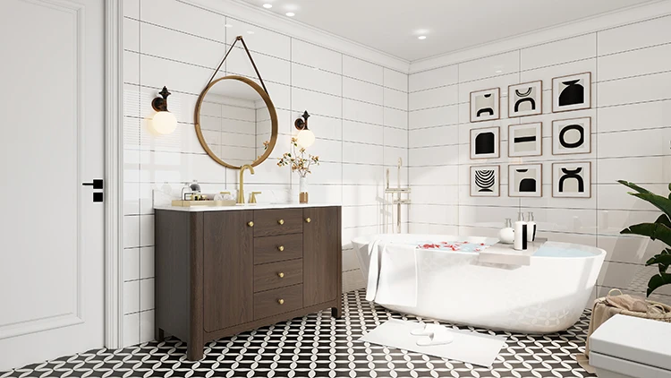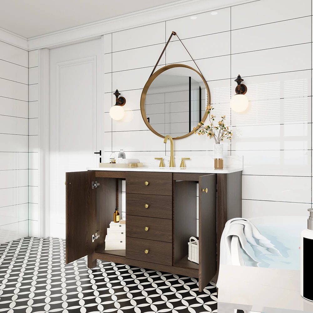 USA Free Shipping No Installation Required Modern Minimalist Style 48inch 60inch Wooden Bathroom Vanity Cabinet with Basin Sink