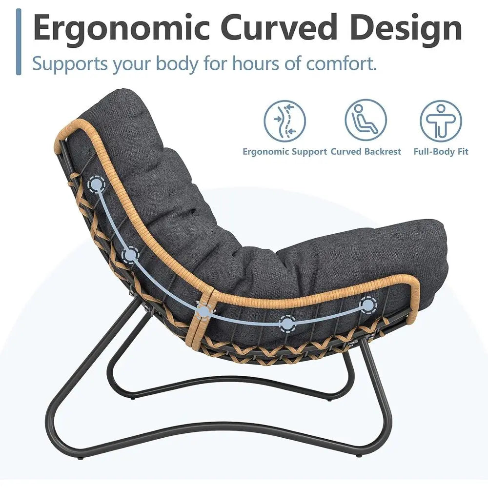 Urban Boho Accent Style - The combination of woven rattan with soft fabric and black steel creates a cozy elegance that adds a boho accent to any patio, balcony, or indoor living space.